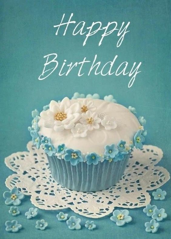 Открытка с днем рождения. На английском языке. Happy Birthday. Пирожное.