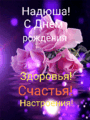 Открытка с днем рождения Надежда Надя gif анимационная. Цветы и пожелания.