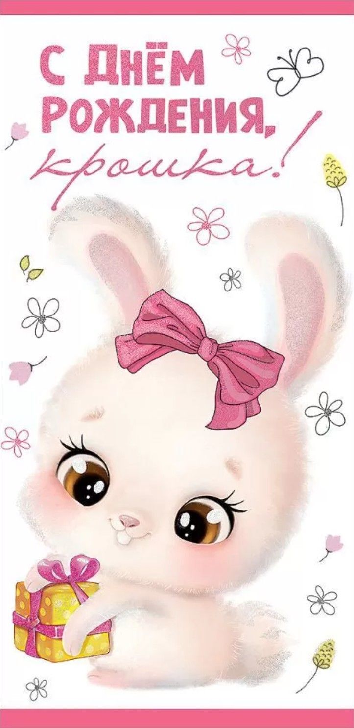 Открытка с днем рождения ребенку. С днем рождения, крошка! Милый зайчик с подарком для девочки.