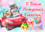 Открытка с днем рождения сын. Котик на автомобиле.