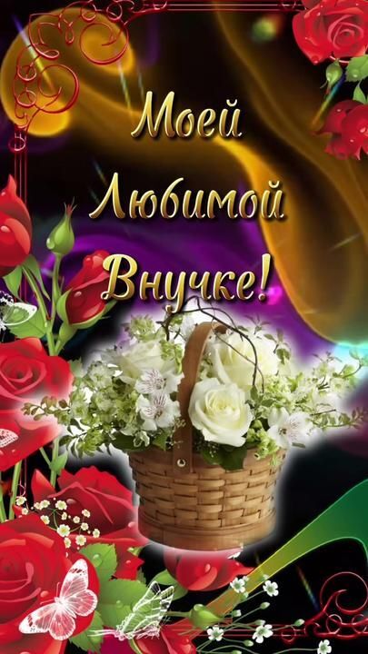 Открытка с днем рождения внучка. Цветы, бабочка. Моей любимой внучке.