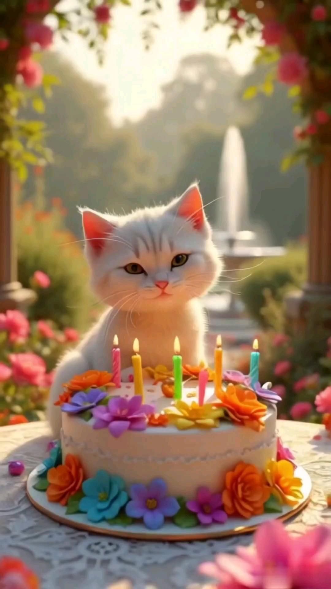 Открытка с днем рождения женщина. Без текста. Котенок и тортик.