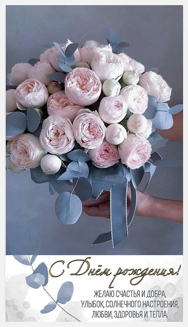 Открытка с днем рождения женщина. Цветы и пожелания от мужчины.
