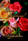 Открытка с днем рождения женщина gif анимационная. Красивые розы.