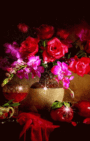 Открытка с днем рождения женщина gif анимационная мерцающая. Без текста. Цветы и сердечко.