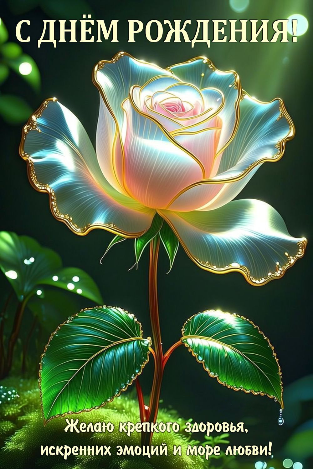 Открытка с днем рождения женщина. Красивая роза и пожелания.