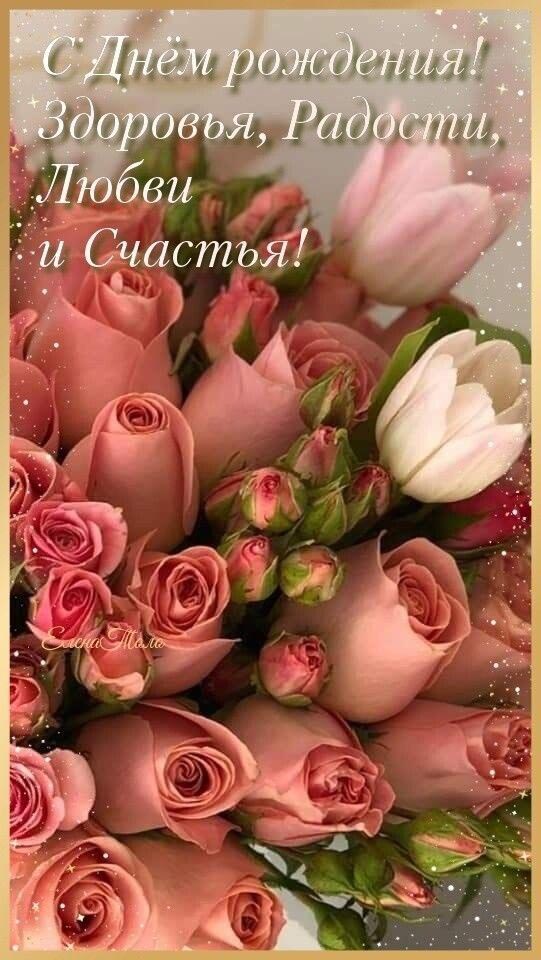 Открытка с днем рождения женщина. Пожелания и красивые цветы.