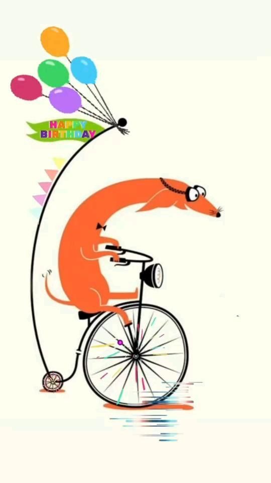 Открытка с днем рождения женщина прикольная с юмором. Happy Birthday. Такса на велосипеде.