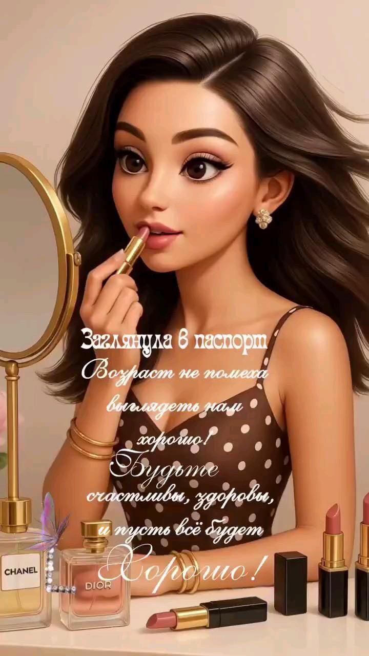 Открытка с днем рождения женщина. Пусть все будет хорошо. Девушка перед зеркалом.