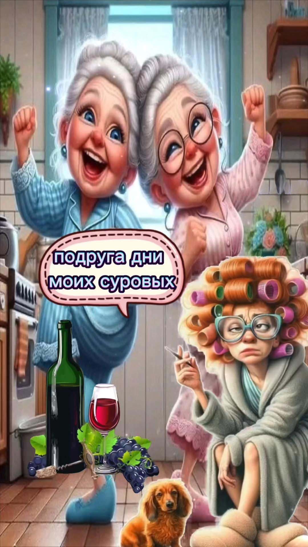 Открытка с днем рождения женщине подруге. Женщины на кухне с вином и едой.