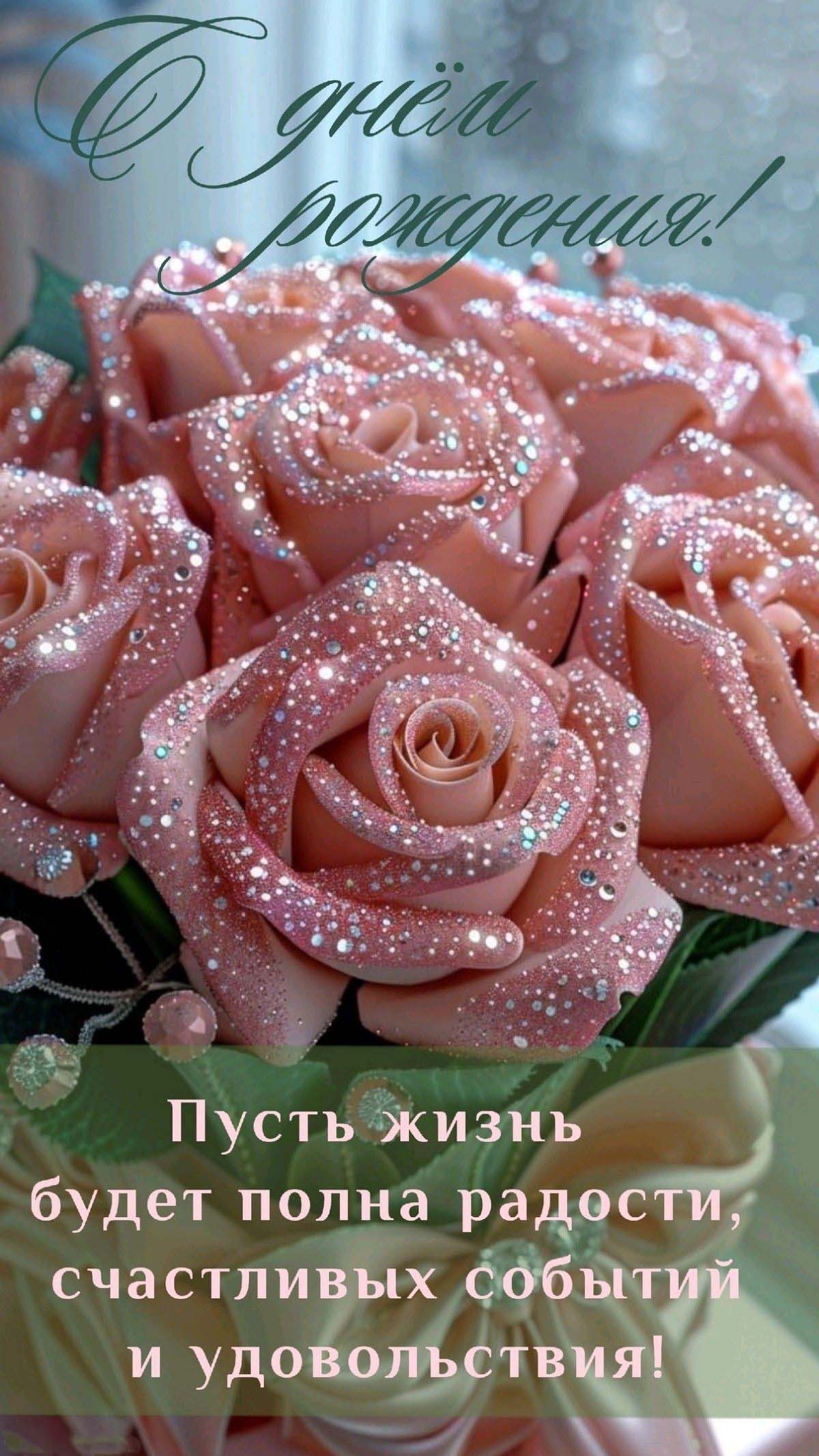 Открытка с днем рождения женщине с пожеланием. Букет коралловых роз. Пусть в твоей жизни будет все, что дает тебе возможность быть счастливой!