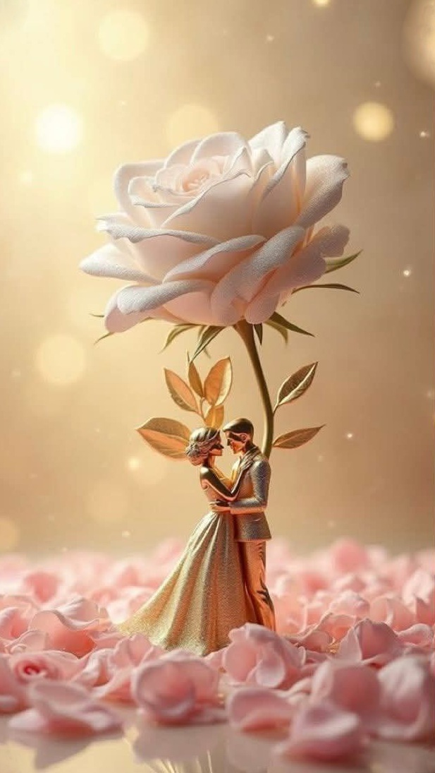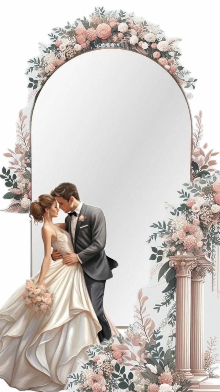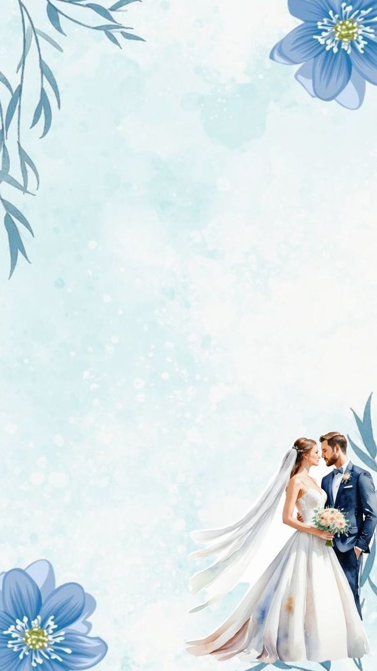 Открытка с днем свадьбы без текста. Голубовато-зеленоватый фон, жених и невеста, цветы.