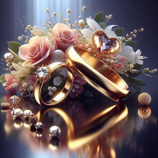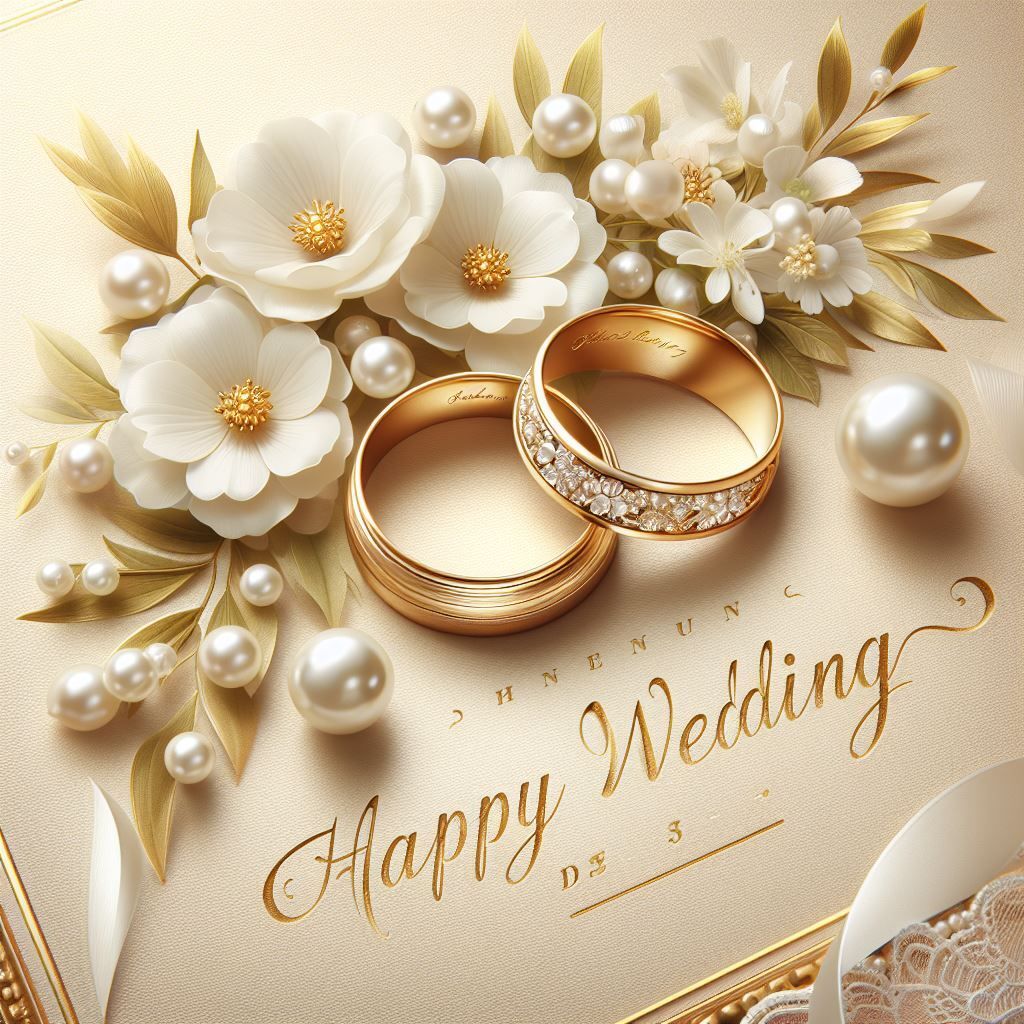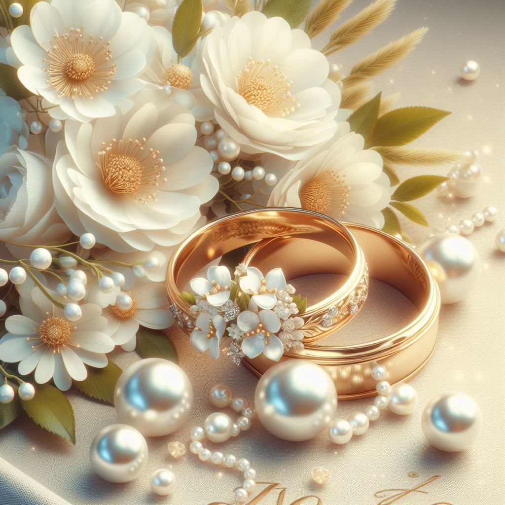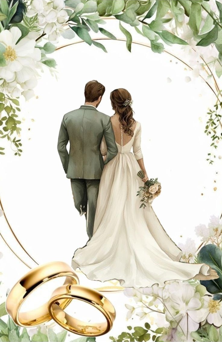 Открытка с днем свадьбы для Марии и Валерия. Цветы и кольца.