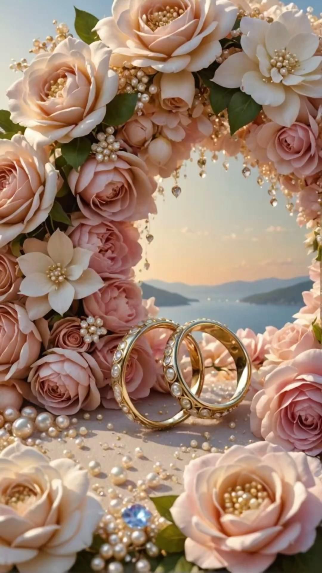 Открытка с днем свадьбы. Пожелания и цветы. Желаю, чтобы в вашем доме царили мир, любовь и радость.