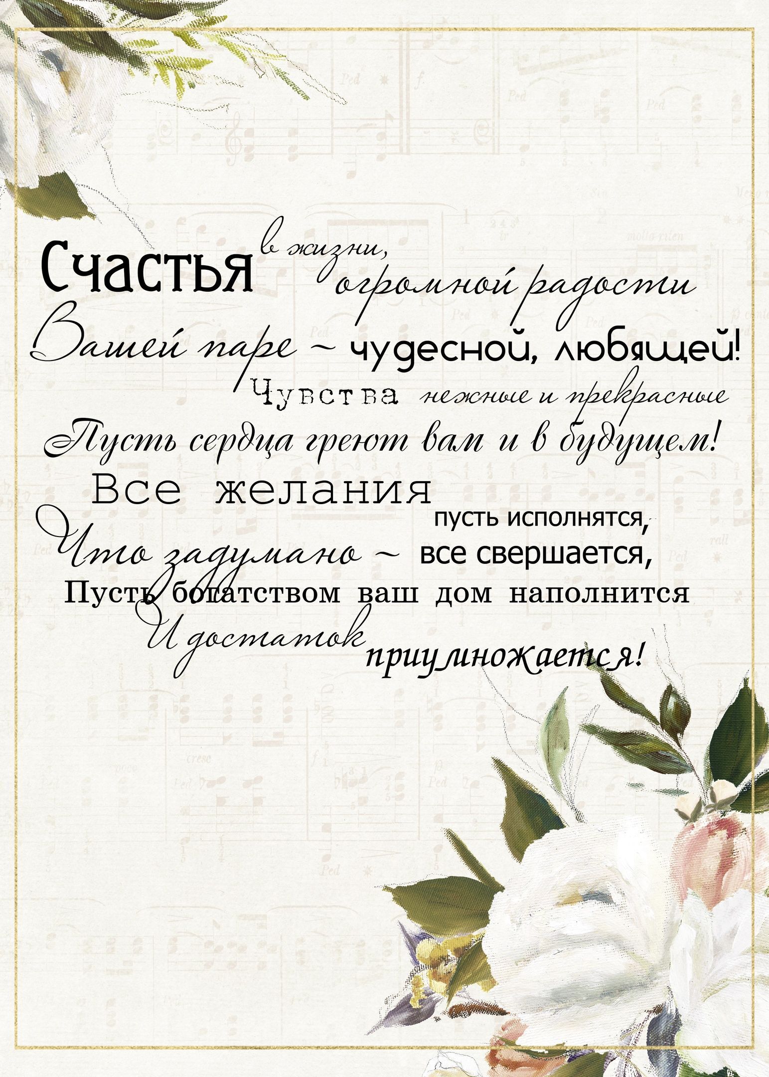 Открытка с днем свадьбы с пожеланием. Жених и невеста, белые цветы. Поздравляю с днем рождения вашей семьи. Пускай в вашей семье всегда царит атмосфера любви, заботы и внимания. Пусть ваша любовь только умножается, а все мечты - сбываются.