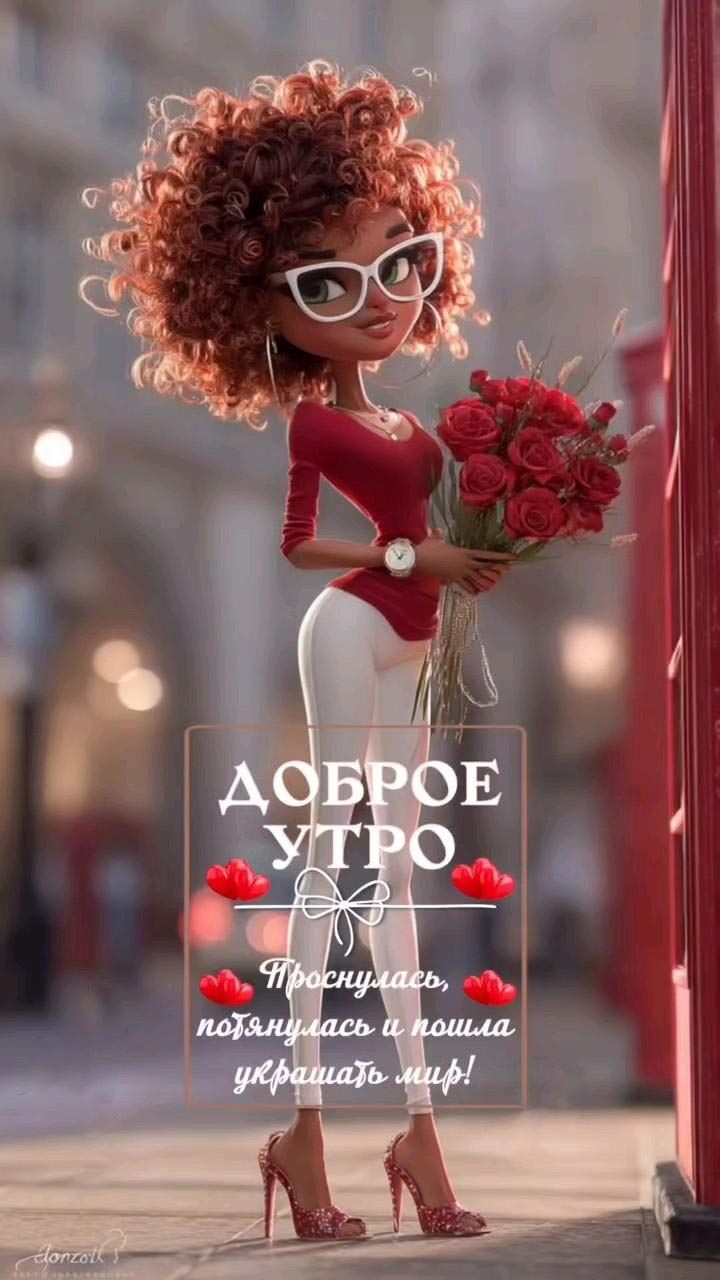 Открытка с добрым утром для женщины. Девушка с цветами.