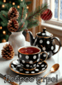 Открытка с добрым зимним утром gif анимационная. Чай, еловые веточки.