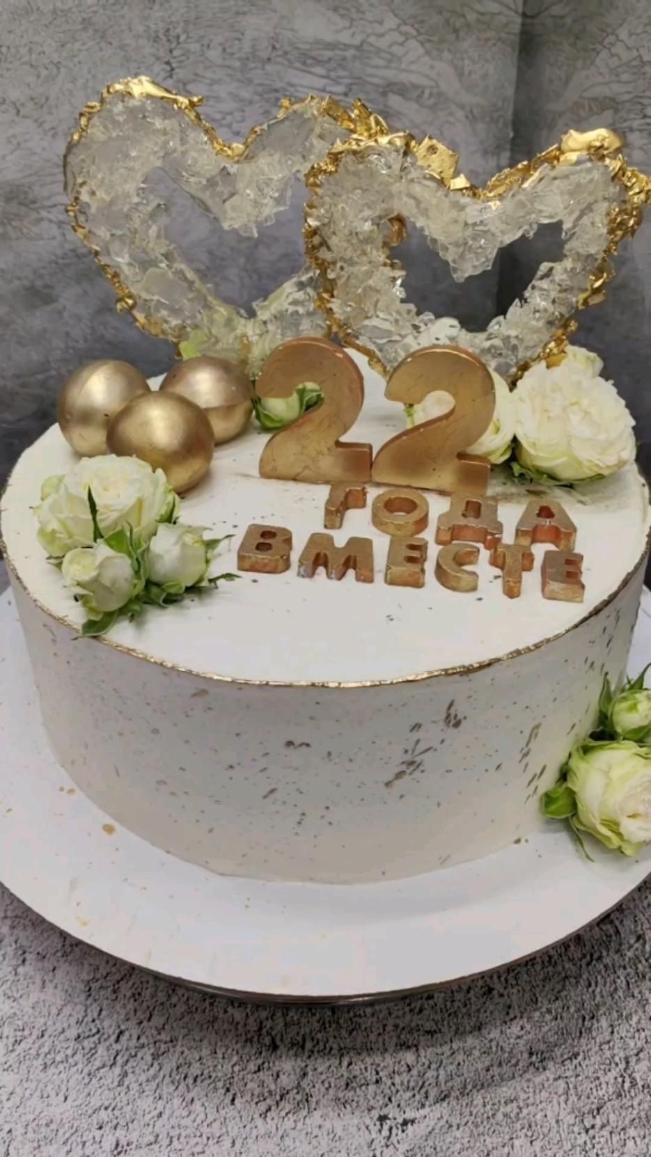 Открытка с годовщиной свадьбы на 33 года. Торт с красными цветами и цифрой 33.
