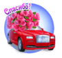Открытка с наступающим Днем автомобилиста gif анимационная. Розовые цветы и красный автомобиль.