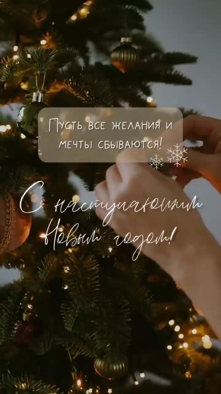 Открытка с наступающим Новым годом. Пожелания. Украшают елочку.