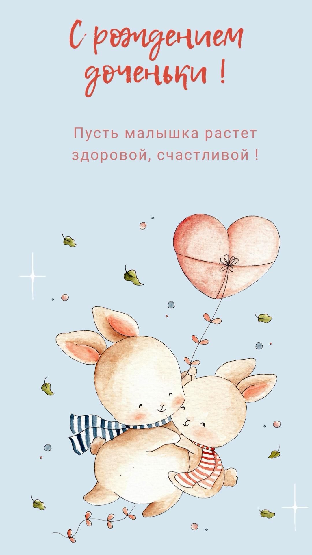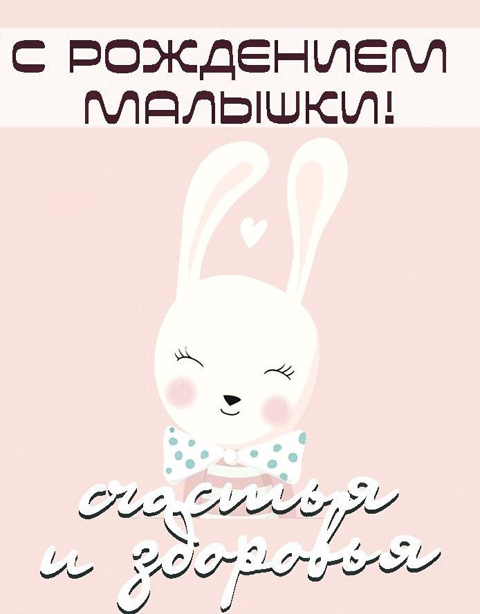 Открытка с новорожденным. С рождением малышки. Зайчик.