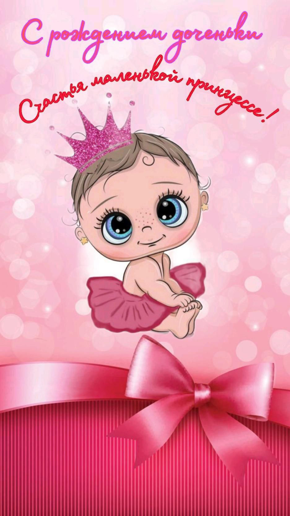 Открытка с новорожденным. С рождением принцессы девочки. Цветы и пожелания.