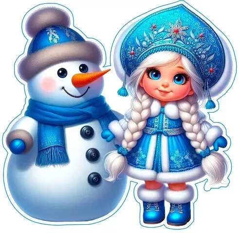 Открытка с Новым годом. Без текста. Снеговичок и Снегурочка.