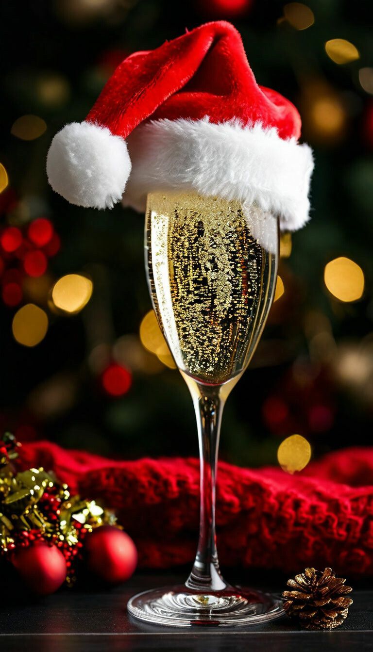 Открытка с Новым годом. Бокал шампанского в новогодней шапочке. Без текста.