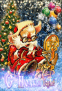 Открытка с Новым годом gif анимационная. Дед Мороз у елочки.