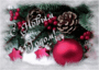 Открытка с Новым годом gif анимационная. Елочные украшения.