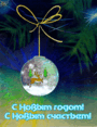 Открытка с Новым годом gif анимационная мерцающая. Олень бежит в шарике. Пожелания.