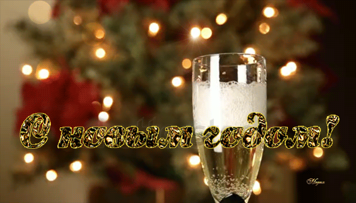 Открытка с Новым годом gif анимационная. Наливают шампанское.