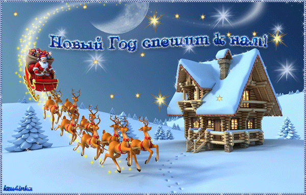 Открытка с Новым годом gif анимационная. Новый год спешит к нам.