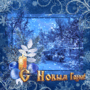 Открытка с Новым годом gif анимационная. Падают снежинки в снежном лесу.