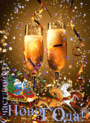 Открытка с Новым годом gif анимационная. Счастливого Нового года! Шампанское, Дед Мороз в санях.