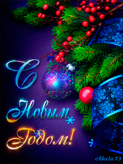 Открытка с Новым годом gif анимационная. Шарик вращается и елочка.