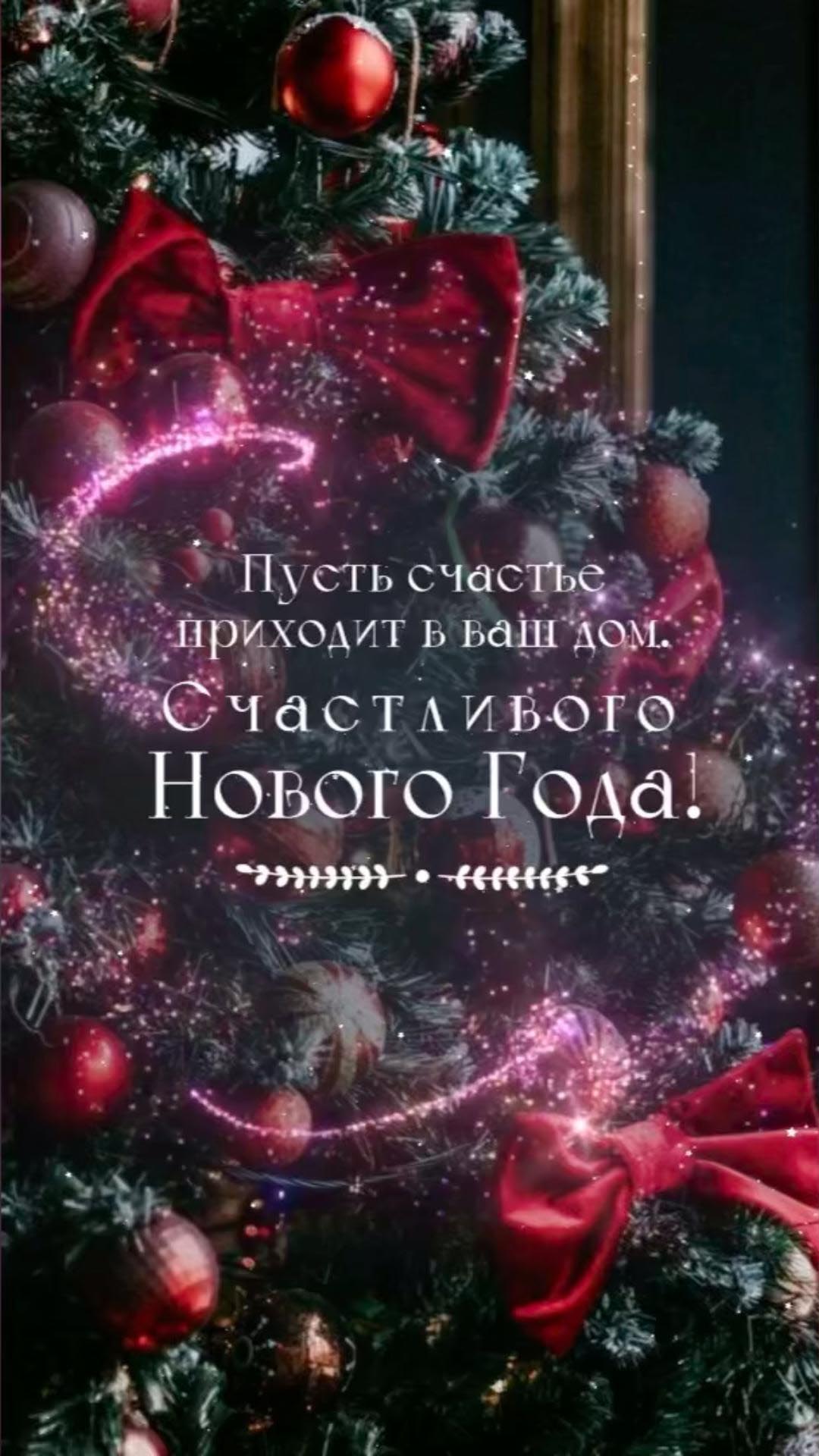 Открытка с Новым годом. Счастливого Нового Года! Украшения на елочке и пожелания.