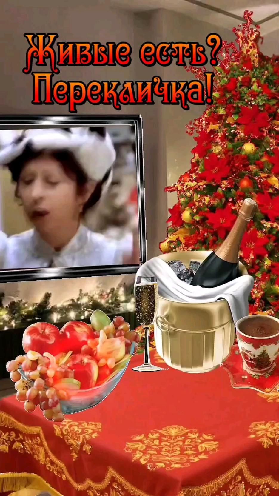 Открытка с Новым годом. Живые есть? Перекличка 1 января. Накрытый стол и фильм С легким паром.