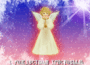 Открытка с Рождеством Христовым gif анимационная. Ангелочек, звезда, идет снег.