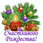 Открытка с Рождеством Христовым gif анимационная. Елочные украшения.