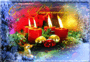Открытка с Рождеством Христовым gif анимационная мерцающая. Свечи и зимний пейзаж.