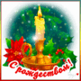 Открытка с Рождеством Христовым gif анимационная. Свеча и елочка.