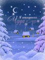 Открытка с Рождеством Христовым gif анимационная. В ожидании чуда. Зимний лес и белочка прыгает.