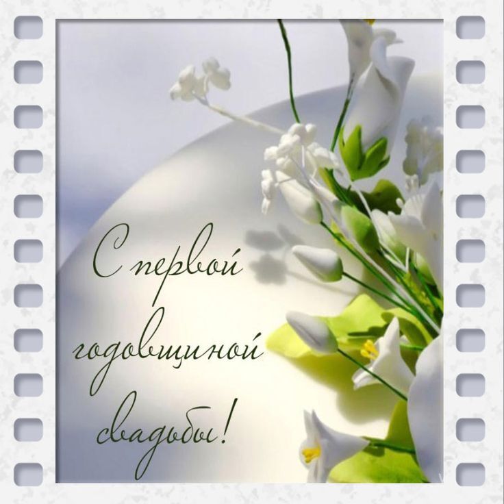 Открытка с ситцевой годовщиной свадьбы 1 год. Первая годовщина свадьбы. Белые цветы.