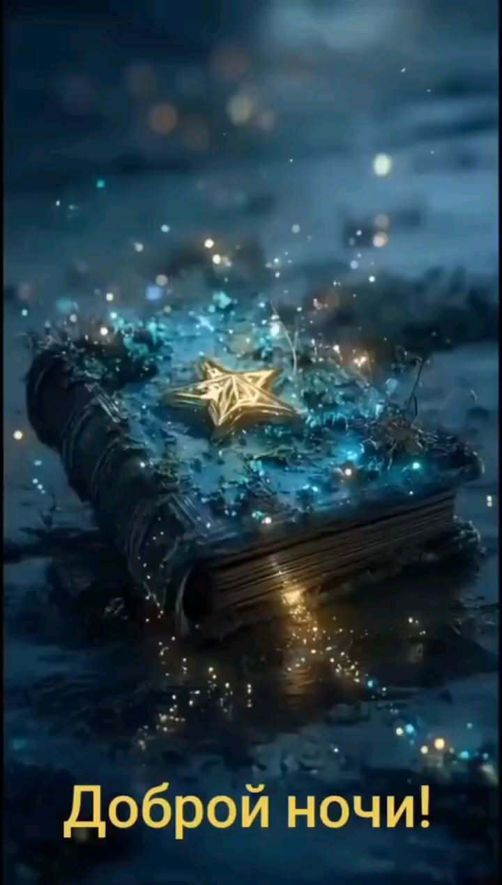 Открытка спокойной ночи. Сказочный сюжет с книгой.