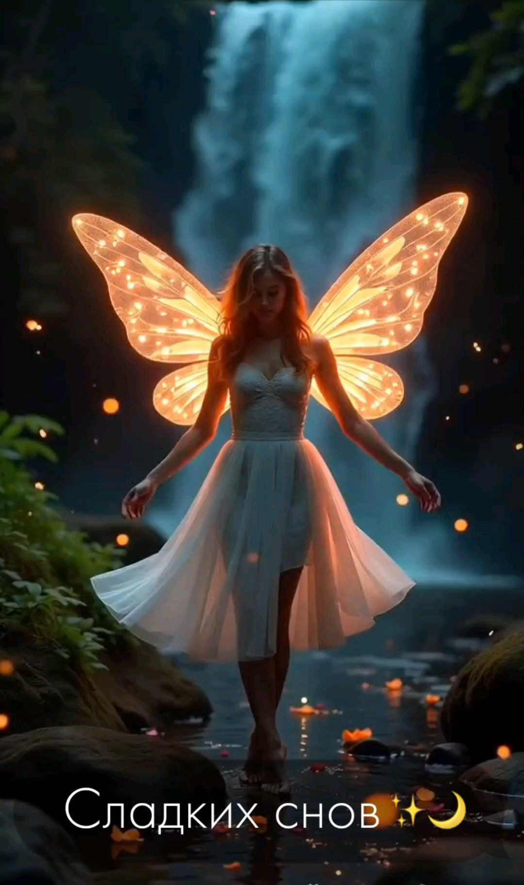 Открытка спокойной ночи. Сладких снов. Девушка с крыльями.