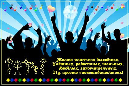 Открытка Желаю класных выходных, улетных, радостных, шальных, веселых