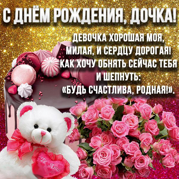 Открытки с днем рождения с цветами для дочки. Душевная картинка с днем рождения на мобильный.