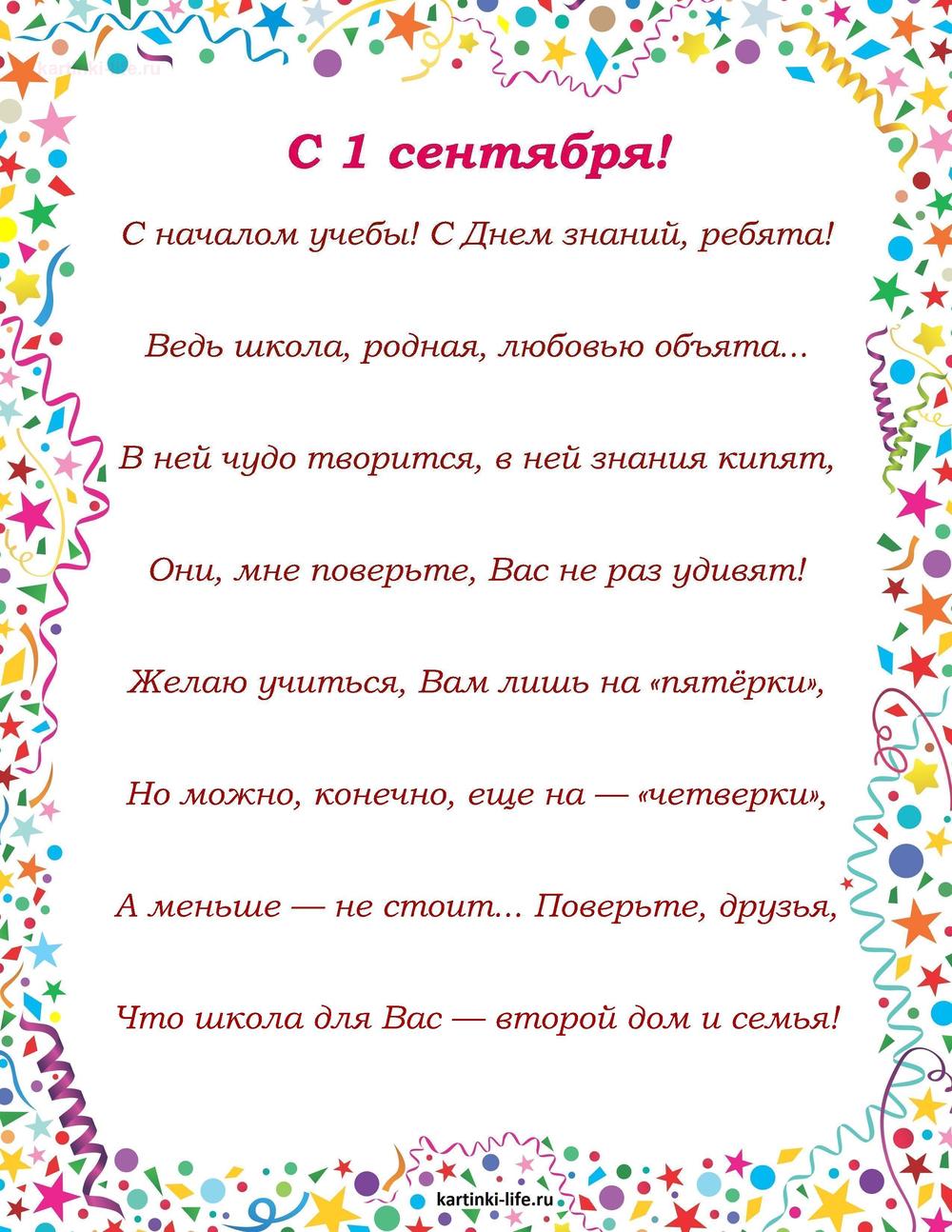 ← Предыдущая ГОЛОСОВЫЕСледующая → С 1 Сентября. Красивые открытки и картинки пока 0оставить комментарий РЕКОМЕНДОВАНО К ПРОСМОТРУ Открытка, картинка, 1 сентября, начало учебного года, день знаний, школа, поздравление, праздник, книга. Открытки Открытка, картинка, 1 сентября, начало учебного года, день знаний, школа, поздравление, праздник, книга, школьники.ОТКРЫТЬСКАЧАТЬ Анимированная открытка С 1 сентября! первым сентябряОТКРЫТЬСКАЧАТЬ Открытка, картинка, сентября, начало учебного года, день знаний, школа, поздравление, цветы. Открытки Открытка, картинка, сентября, начало учебного года, день знаний, школа, поздравление, цветы, колокольчики.ОТКРЫТЬСКАЧАТЬ Открытка, картинка, сентября, начало учебного года, день знаний, школа, поздравление, Маша из мультика. Открытки Открытка, картинка, сентября, начало учебного года, день знаний, школа, поздравление, Маша из мультика, цветы, гладиолусы.ОТКРЫТЬСКАЧАТЬ Открытка С началом учебного года!ОТКРЫТЬСКАЧАТЬ Открытка, картинка, сентября, начало учебного года, день знаний, школа, поздравление, пожелание. Открытки Открытка, картинка, сентября, начало учебного года, день знаний, школа, поздравление, пожелание, школьница, книги.ОТКРЫТЬСКАЧАТЬ Прикольные Поздравления С 1 Сентября! С Новым Учебным Годом! С Днем знаний!. [1 сентября, начало учебного года, День знаний - Музыкальные поздравления]ОТКРЫТЬСКАЧАТЬ Открытка, картинка, 1 сентября, начало учебного года, день знаний, школа, сова. Открытки Открытка, картинка, 1 сентября, начало учебного года, день знаний, школа, сова, поздравление.ОТКРЫТЬСКАЧАТЬ Открытка, картинка, 1 сентября, начало учебного года, день знаний, поздравление, первый звонок, кот. Открытки Открытка, картинка, 1 сентября, начало учебного года, день знаний, поздравление, первый звонок, кот, очки, книга, прикол.ОТКРЫТЬСКАЧАТЬ Открытка, картинка, 1 сентября, начало учебного года, день знаний, поздравление, первый звонок, пожелание, глобус, будильник. Открытки Открытка, картинка, 1 сентября, начало учебного года, день знаний, поздравление, первый звонок, пожелание, глобус, будильник, блокнот.ОТКРЫТЬСКАЧАТЬ 299 открытокС 1 СЕНТЯБРЯ С ДНЕМ ЗНАНИЙ ПОЖЕЛАНИЯ Открытки с Днем рождения Продолжить просмотр Поздравление на первое сентября, на день знаний. С началом учебы! С Днем знаний, ребята! Ведь школа, родная, любовью объята