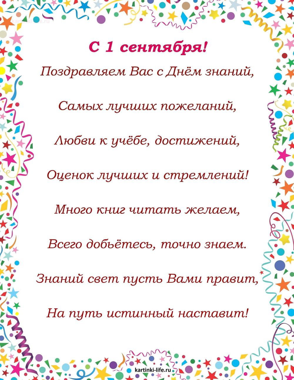 ← Предыдущая ГОЛОСОВЫЕСледующая → С 1 Сентября. Красивые открытки и картинки пока 0оставить комментарий РЕКОМЕНДОВАНО К ПРОСМОТРУ Открытка, картинка, сентября, начало учебного года, день знаний, школа, поздравление, колокольчики. Открытки Открытка, картинка, сентября, начало учебного года, день знаний, школа, поздравление, колокольчики, листья.ОТКРЫТЬСКАЧАТЬ Яркая открытка с колокольчиком на 1 сентябряОТКРЫТЬСКАЧАТЬ Открытка С Днем знаний!ОТКРЫТЬСКАЧАТЬ Открытка, картинка, 1 сентября, начало учебного года, день знаний, школа, первоклассница. Открытки Открытка, картинка, 1 сентября, начало учебного года, день знаний, школа, первоклассница, осень.ОТКРЫТЬСКАЧАТЬ Всем школьникам поздравления с 1 сентября! Видео открытка с началом нового учебного года. [1 сентября, начало учебного года, День знаний - Музыкальные поздравления]ОТКРЫТЬСКАЧАТЬ Открытка, картинка, 1 сентября, начало учебного года, день знаний, поздравление, первый звонок, школьник. Открытки Открытка, картинка, 1 сентября, начало учебного года, день знаний, поздравление, первый звонок, школьник, первоклассник.ОТКРЫТЬСКАЧАТЬ Анимированная открытка 1 сентябряОТКРЫТЬСКАЧАТЬ Открытка, картинка, 1 сентября, начало учебного года, день знаний, поздравление, первый звонок, глобус. Открытки Открытка, картинка, 1 сентября, начало учебного года, день знаний, поздравление, первый звонок, глобус, книги.ОТКРЫТЬСКАЧАТЬ 1 сентября. Пожелание с красивым фоном на День знаний. Сегодня, в день знаний, тебя поздравляю. Желаний твоих исполненья желаю, успехов в учебе и новых друзей, пусть жизнь твоя будет еще веселей!ОТКРЫТЬСКАЧАТЬ День Знаний Праздник Здравствуй ПЕРВЫЙ КЛАСС Красивое поздравление с 1 сентября . [1 сентября, начало учебного года, День знаний - Музыкальные поздравления]ОТКРЫТЬСКАЧАТЬ 299 открытокС 1 СЕНТЯБРЯ С ДНЕМ ЗНАНИЙ ПОЖЕЛАНИЯ Открытки с Днем рождения Продолжить просмотр Поздравление на первое сентября, на день знаний. Поздравляем Вас с Днем знаний, Самых лучших пожеланий,
